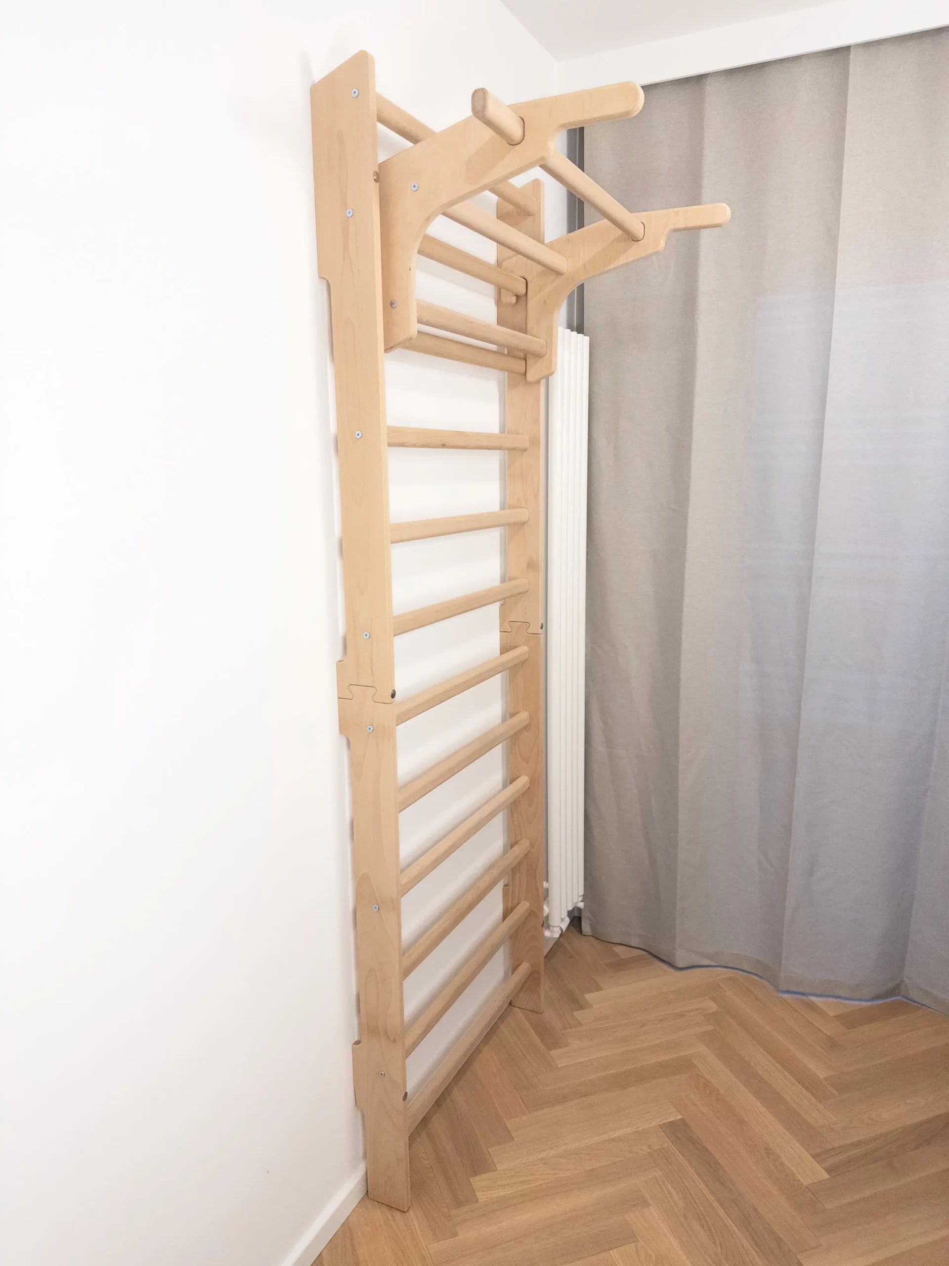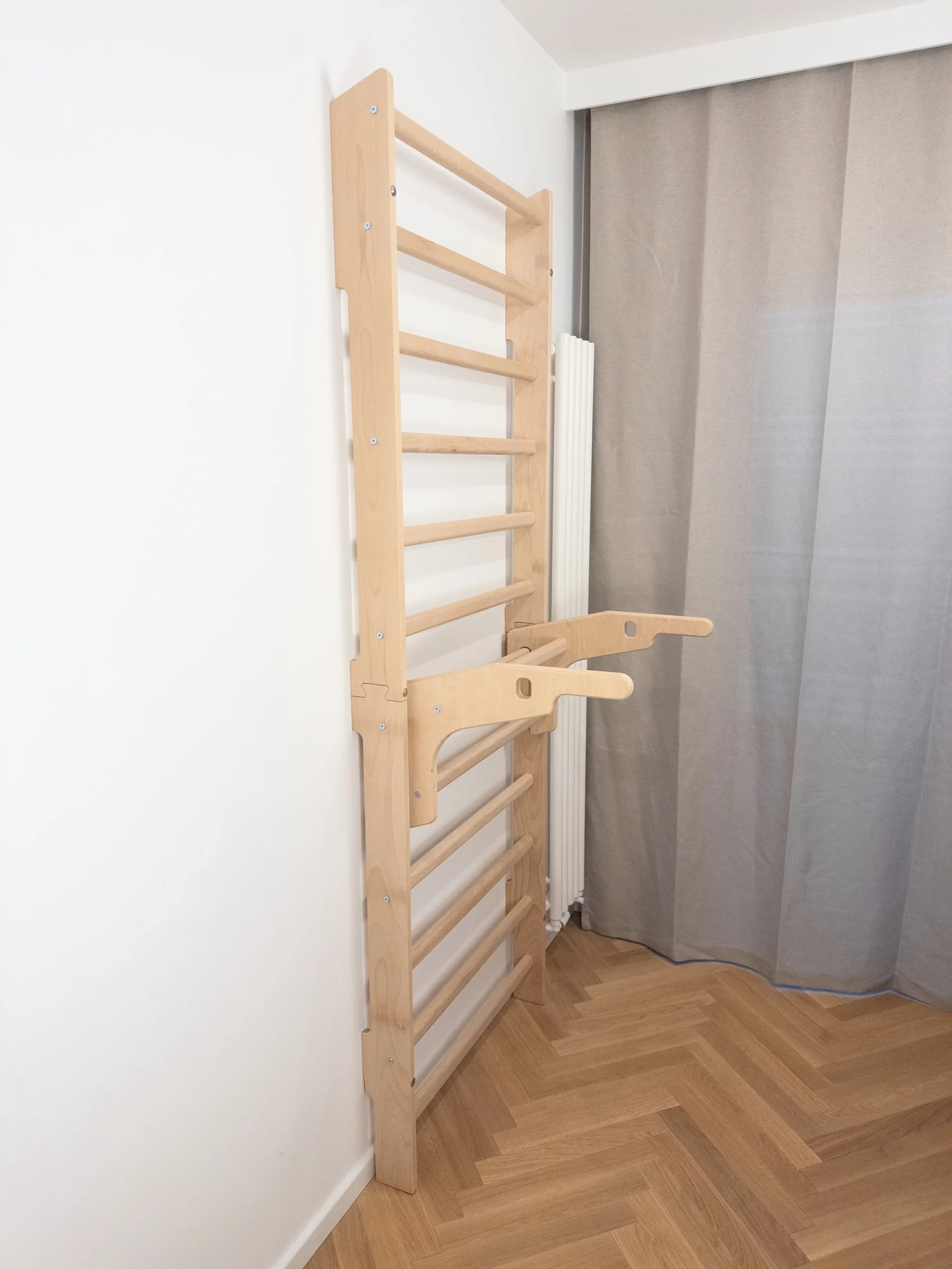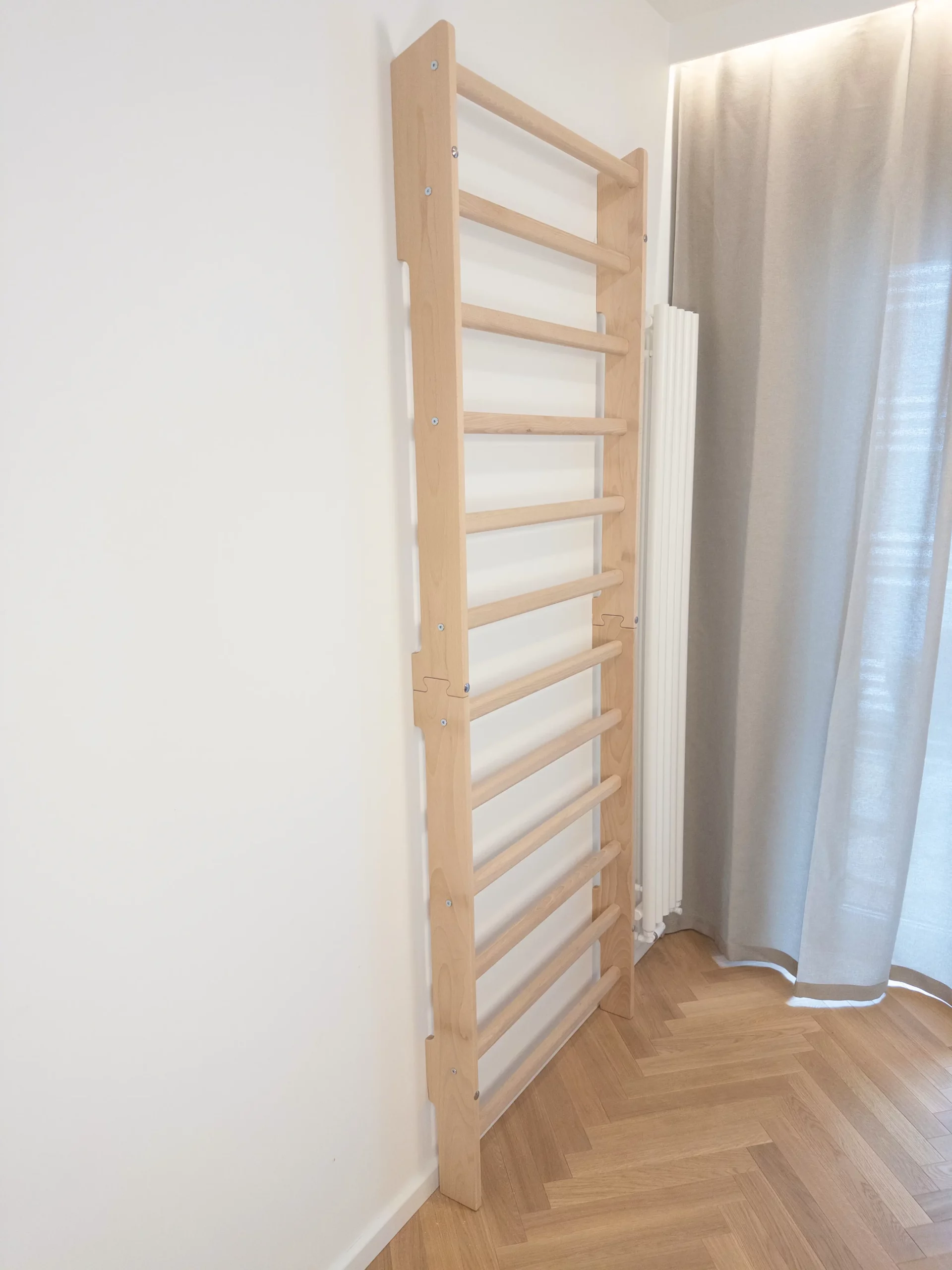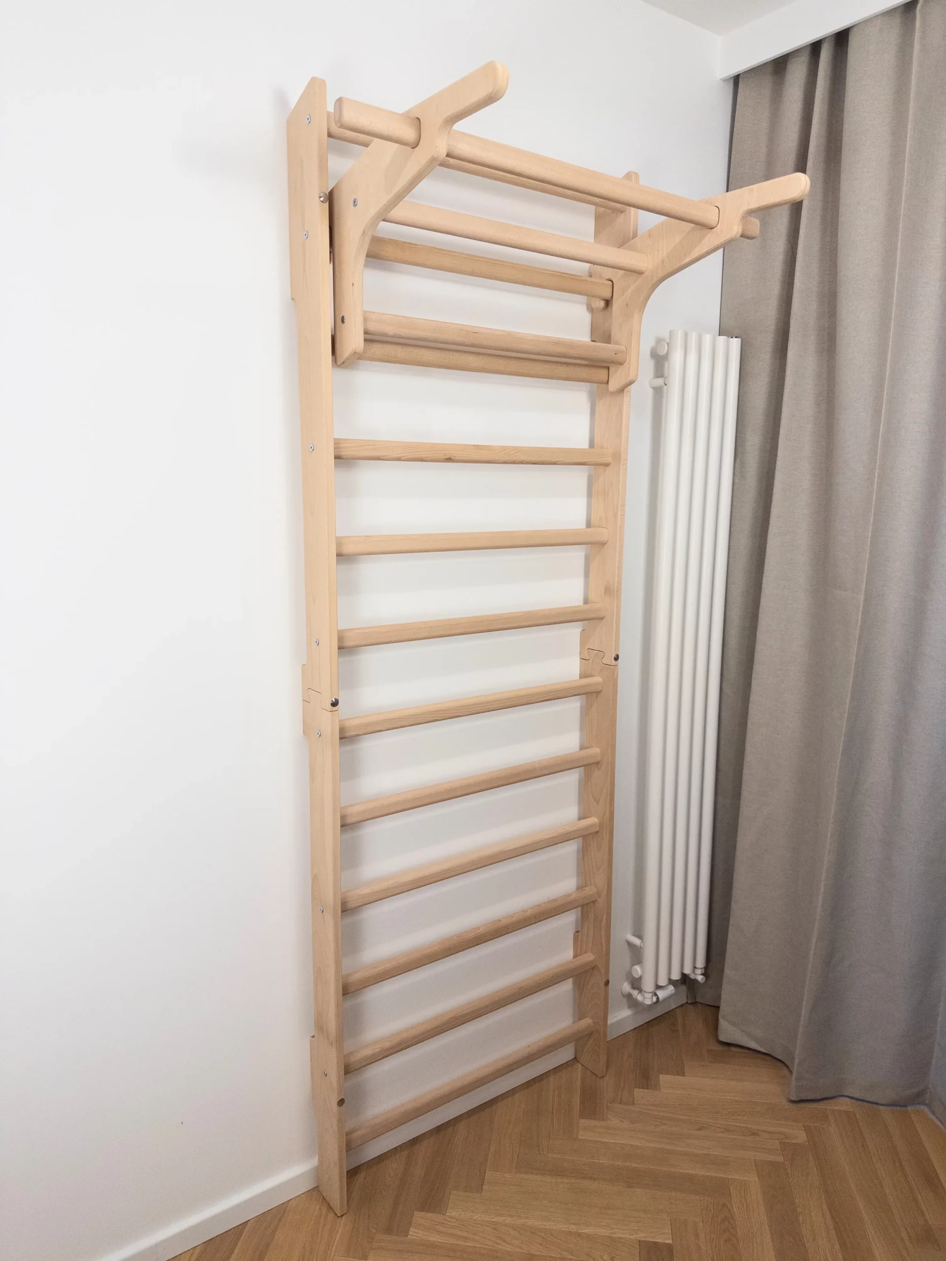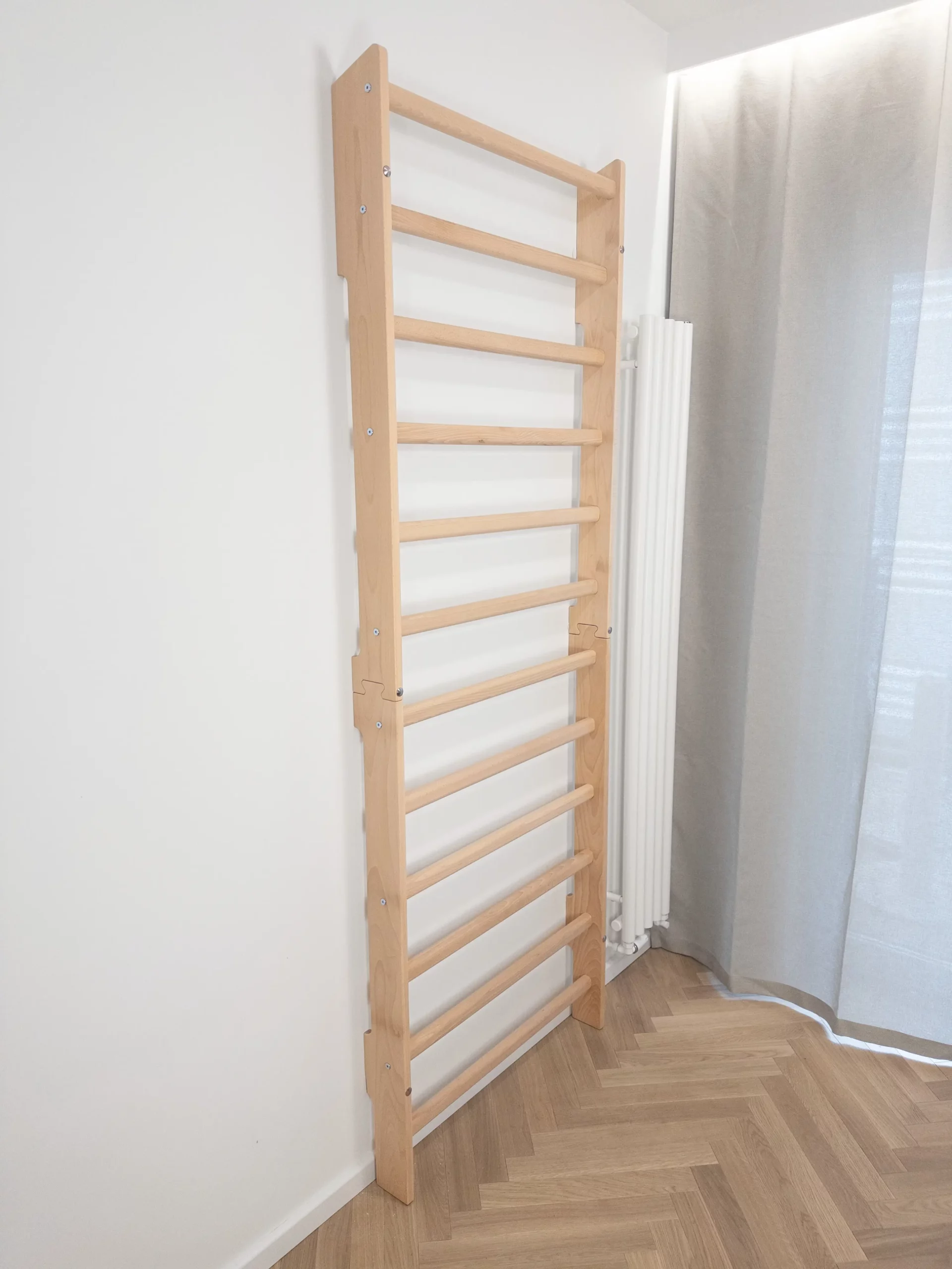 Drabinka gimnastyczna WhiteOak to solidna, dopracowana konstrukcja zaprojektowana z myślą o dorosłych i dzieciach. Idealnie sprawdzi się zarówno w domowej siłowni, gabinecie fizjoterapeutycznym, jak i w pokoju dziecięcym jako stylowy element do ćwiczeń i zabawy.